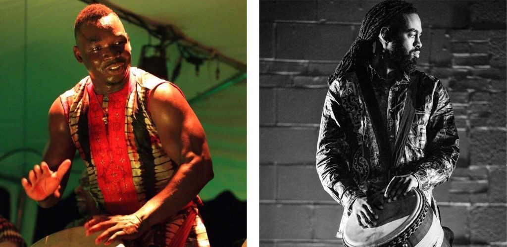 16:00-17:45 Haladó Djembe workshop Harouna Dembelével és Sanu Basuval