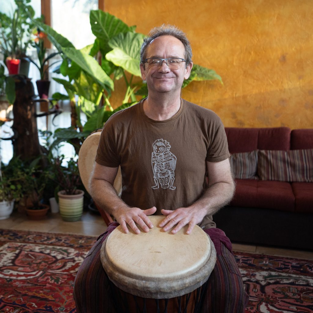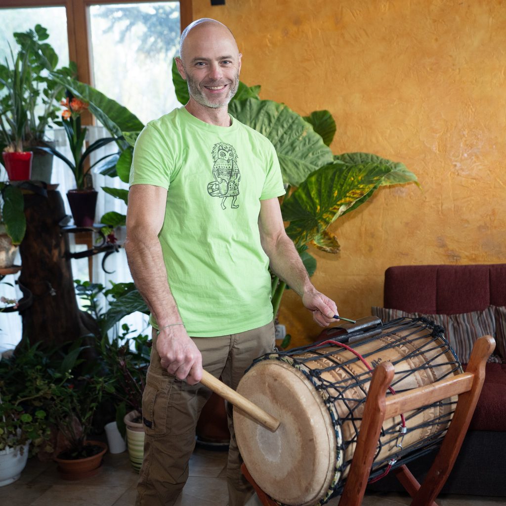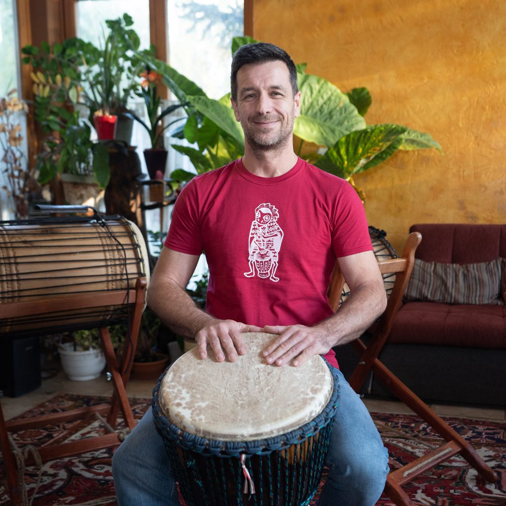 Hegedűs Péter vagyok, gyerekkorom óta nagyon fontos szerepet játszik az életemben a zene. Klasszikus- és basszusgitároztam, majd később congáztam, és végül a nyugat-afrikai zenénél, a gyökereknél kötöttem ki. Több mint 15 éve djembézek, mélydobolok saját örömömre, és dobkörökben, mint a közösségi élet egyik formája. Tudatosan foglalkozom az afrikai zenével és annak tanításával. Jellemzően autodidakta módon tanulok, de rendszeresen veszek részt autentikus mesterek workshopjain is. Szakadalanul keresem, gyűjtöm és tanulom az afrikai ritmusokat és készítek saját átíratokat ballet stílusú mélydob felállásra.